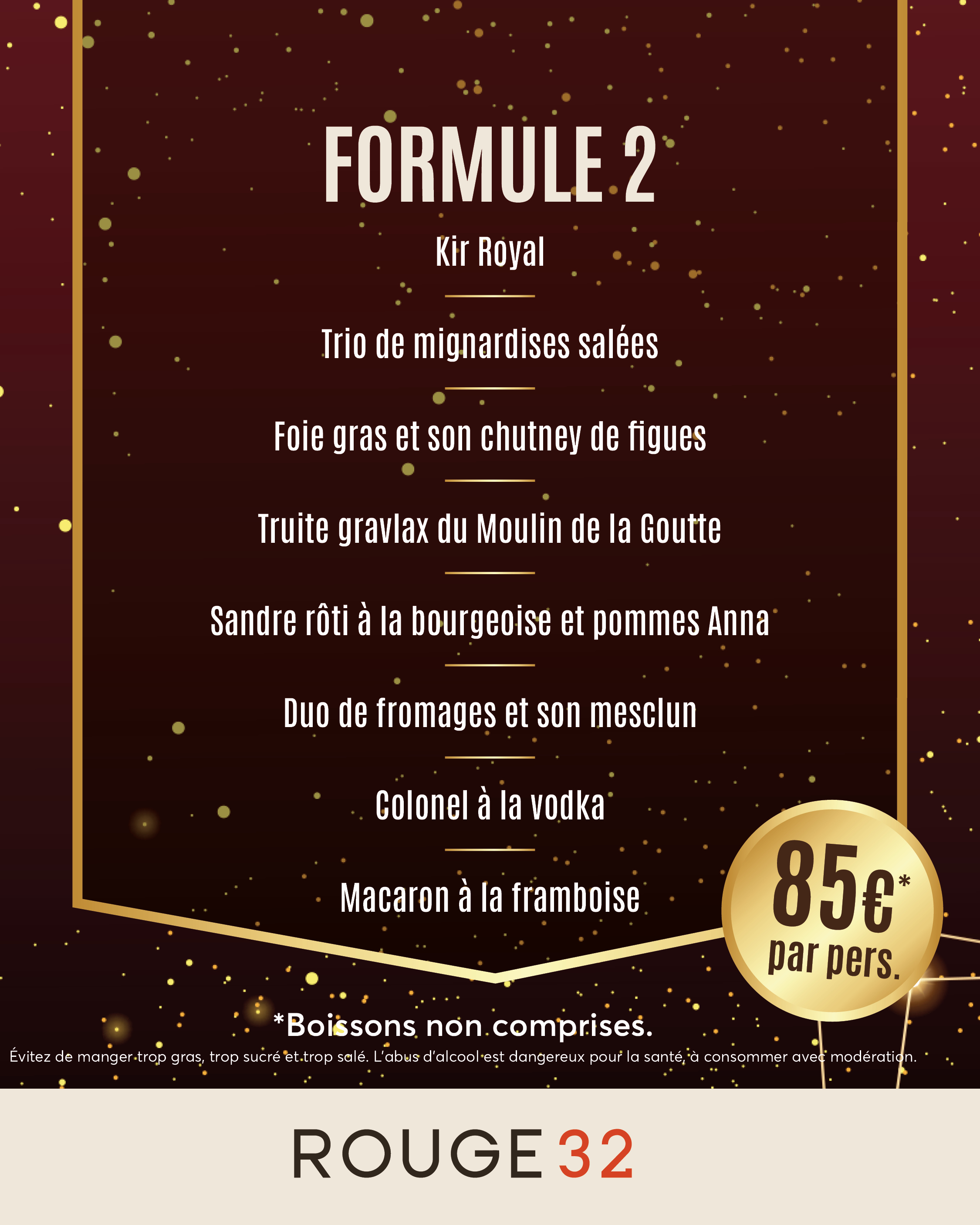 Dès 20h00, installez-vous pour savourer un menu soigneusement imaginé pour sublimer votre passage à 2026.