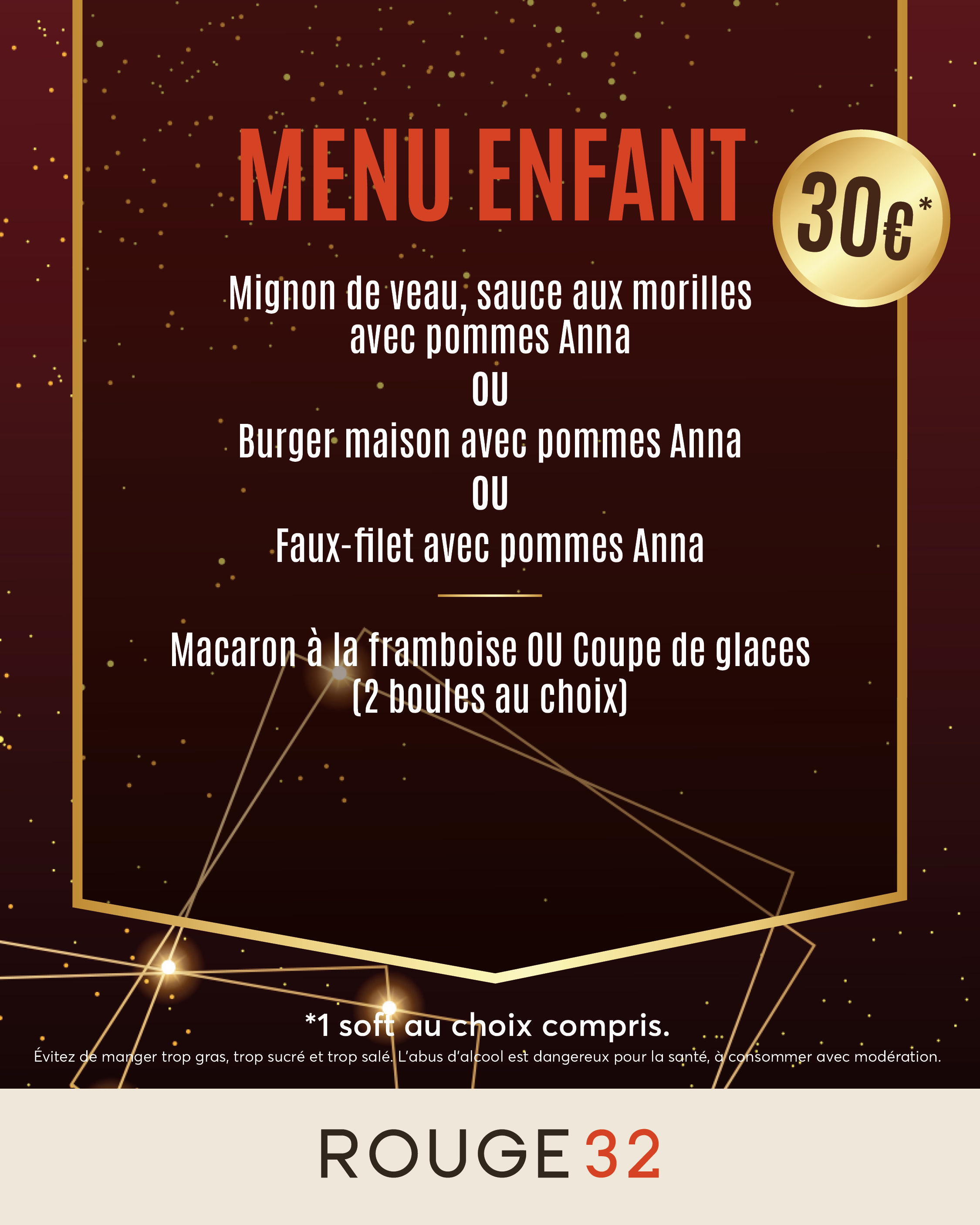 👧🧒 Menu Enfant (-12 ans) – 30€